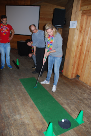 Birdie!! Wir verteilen die 18 Löcher im ganzen Hotel und die Teams versuchen bei dieser Golfpartie, mit verschiedenen Elementen und